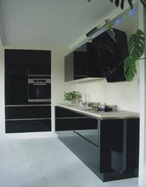 minimalistisches Design in seiner schönsten Form - mit integrierter Griffleiste. Die Fronten sind schwarz hochglänzend lackiert und die Arbeitsplatten besteht aus gebürstetem Jura Marmor. Dieses Modell gibt es darüberhinaus auch in mehreren andern Mattlack- oder Hochglanzlacken.